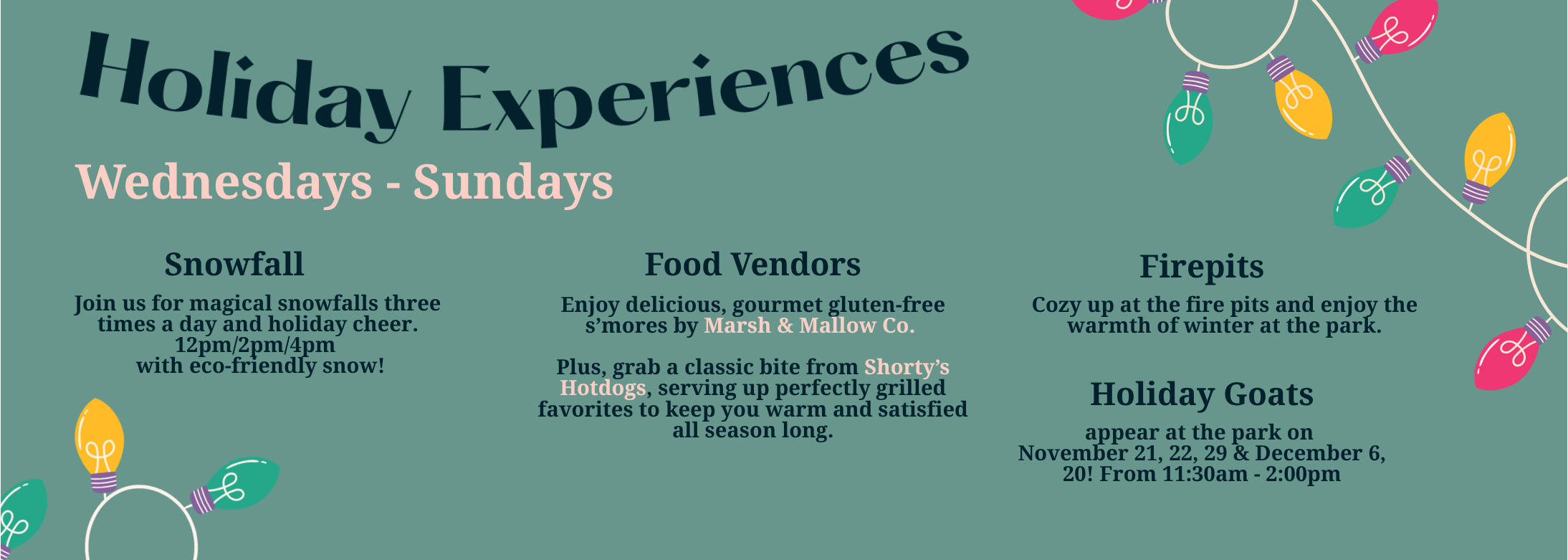 Holiday Goats: November 21st, 22nd, 29th. December 6th & 20th 11: 30 a.m. - 2 p.m.